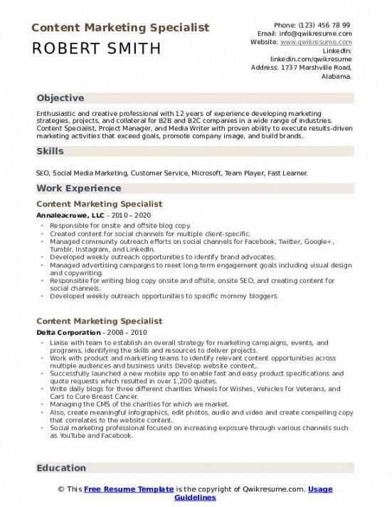 content marketing specialist resume samples  qwikresume marketing specialist job description template