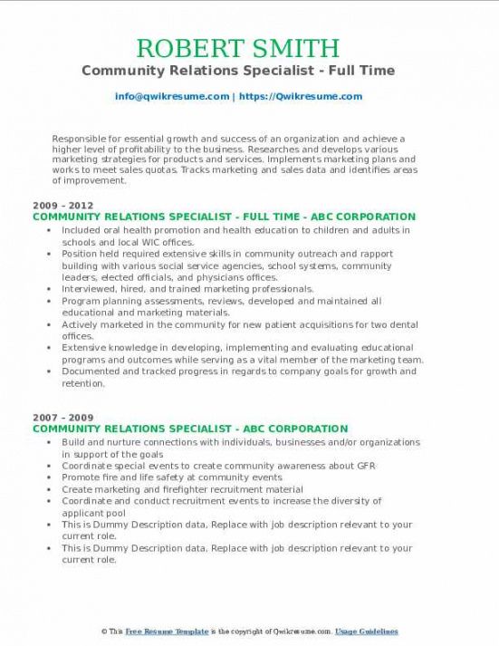 free community relations specialist resume samples  qwikresume marketing specialist job description template pdf