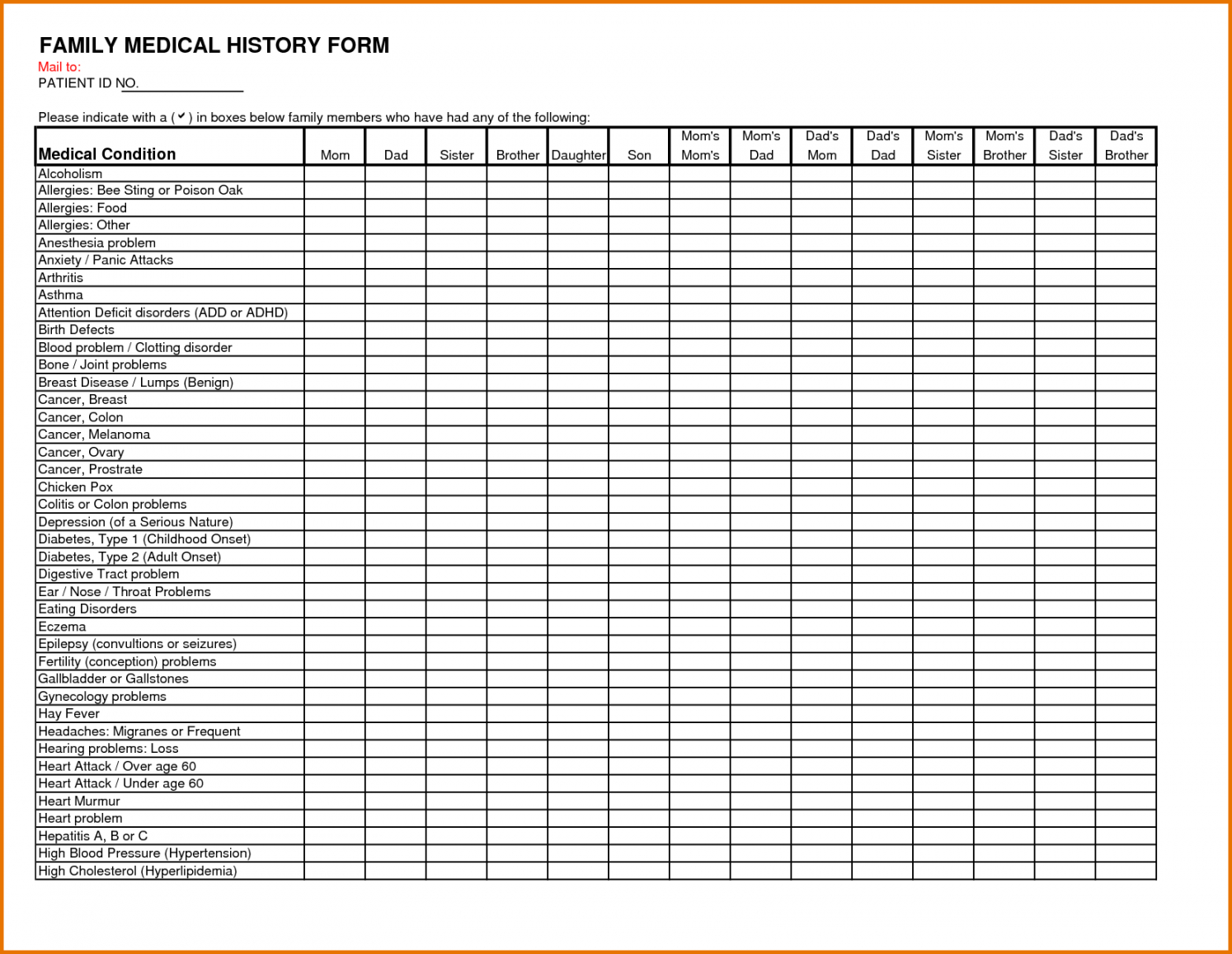 Medical history checklist template, For a lot of men and women, as they become older, their needs vary dramatically. Based upon a person’s age, health and psychological capacity, there might be many things that a grownup simply can’t keep up with the way they used to, or many things a Boomer does not have (can you say”Advanced Directives”) and doesn’t understand they need until it is too late. We think that among the best ways to get boomers ready for their futures, and to maintain seniors arranged in the current, is by equipping them with checklists that cover major regions of their life. We think that while checklists might not have the minute details laid out (checklists are supposed to deliver concise advice), they’re a great planning tool which provide people a macro-view of what needs to be discovered, gathered, prepared, and finally implemented, particularly when planning for the most unexpected moment; moments where without a plan in place becomes a crisis scenario.