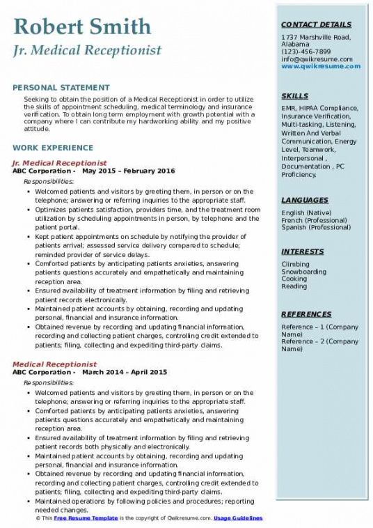Medical office receptionist job description template, Among the numerous responsibilities of a human resources specialist, hiring fresh competent workers is one of the most important. After carefully analyzing the competency design your organization wants, you will be able to determine the specific qualities that potential employees must have – the skills and qualities that are most important to one function or the other. When you’ve carefully established your hiring criteria, the next essential step is this description.
