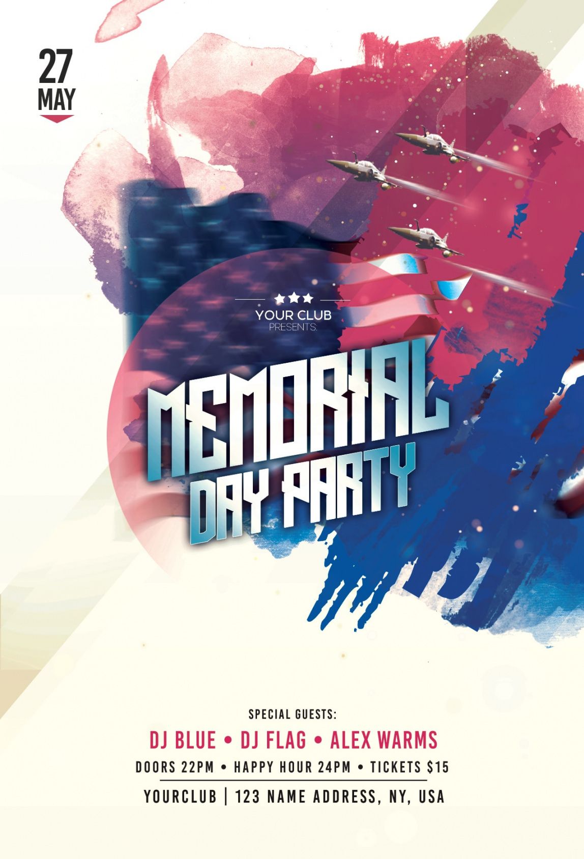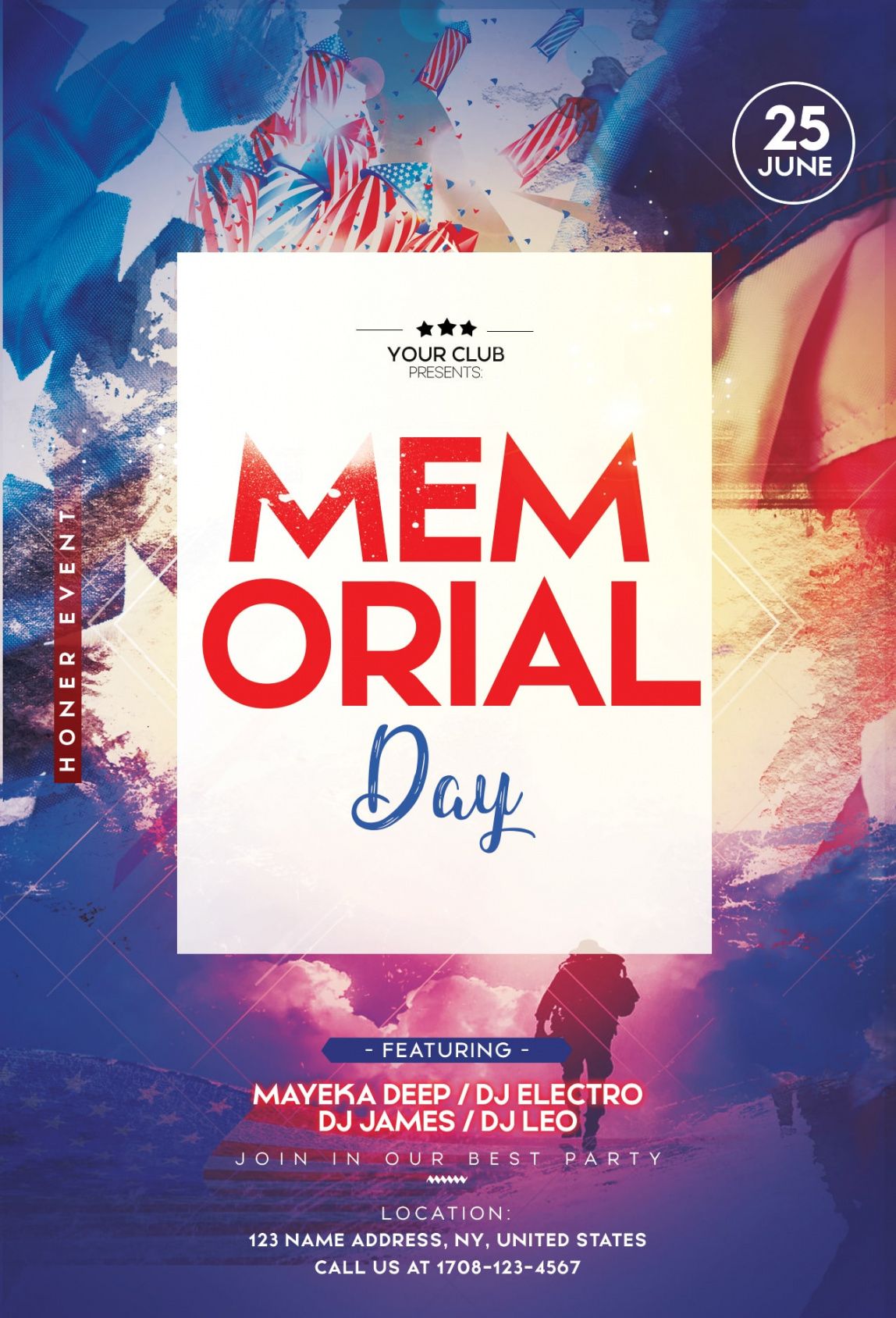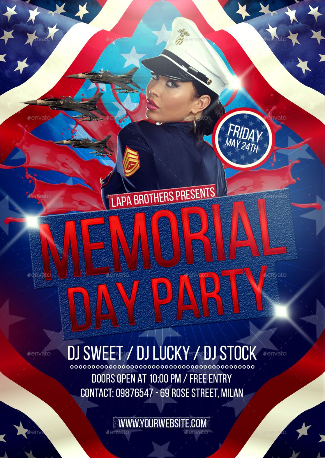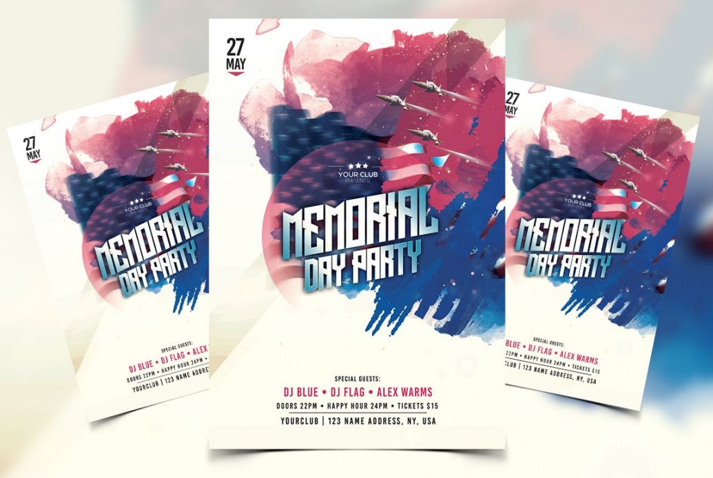 Memorial day party flyer template, Flyers are the most effective form of local advertising. Production costs are low, and it is often possible to find students who can distribute the flyers in low hourly salary. Flyers are the most effective method of promotion for events and company specials. Careful selection of location and careful choice of employees can insure a powerful and inexpensive flyer distribution. The best way to distribute your flyers is to put them up at local colleges, small businesses, and local associations. A potent local presence is of extreme importance for merchants or smallish companies. In case the local enterprise is encouraged and valued by the local community, then you will have a trusted cash flow coming in and also a strong basis for future growth.