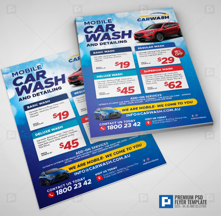 Mobile car wash flyer template, Flyers are informational documents about a certain business or a event that is being coordinated by some organization. Flyer printing is a way of informing the public about any fresh offers of sales or discounts as being offered by a company or organization. These educational article are great source of informing masses of local market concerning the new developments occurring in different areas, like any new product, new event etc.. Flyers have evolved among an effective mode of immediate communication with the customer.