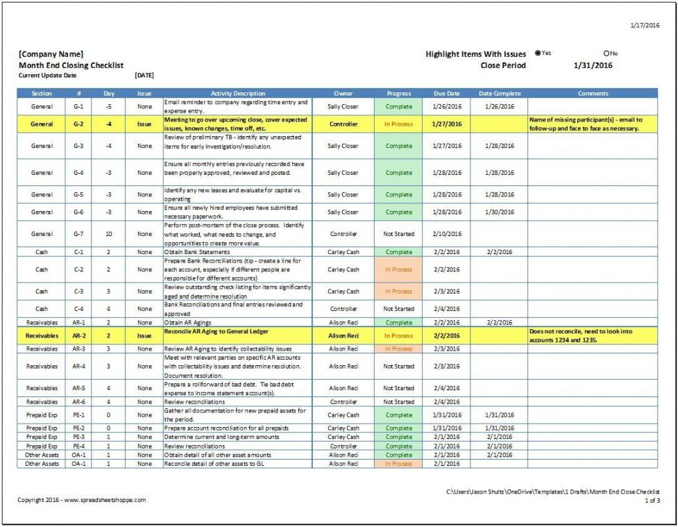 Month end checklist template excel, Historically, checklists were straightforward to-do lists that functioned as reminders; attend the sales seminar, fax or email the contract to an individual customer, or distribute a worker memo. Even today, most dictionaries define a checklist for a record that acts as a reminder for a collection of tasks to be completed. But, checklists have now evolved into important business management tools that do far more. In addition to record action items, checklists are powerful business processes that empower organizations to raise and progress methodically, and in a planned manner. They have become significant organizational tools for both business enterprises.