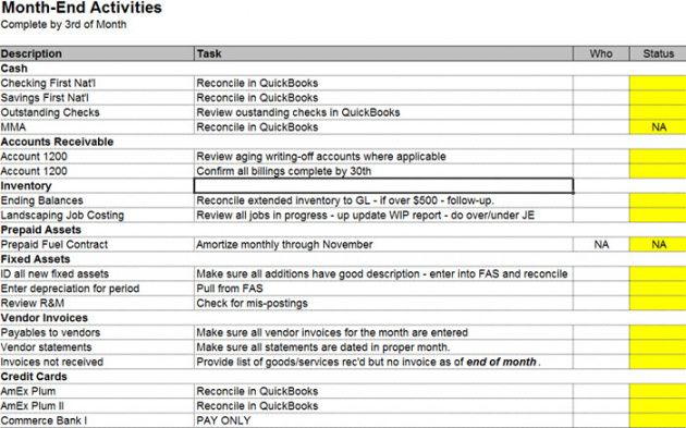 Month end closing checklist template, Historically, checklists were straightforward to-do lists which functioned as reminders; attend the sales seminar, fax or email the contract to a customer, or distribute a worker memo. Even today, most dictionaries define a record for a record that serves as a reminder to get a collection of jobs to be finished. But, checklists have now evolved into important business management tools which do much more. Along with record action items, checklists are effective business processes that empower organizations to grow and progress methodically, and in a planned way. They’ve become important organizational tools for both business ventures.