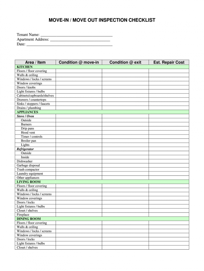 Move in move out checklist template, Historically, checklists were straightforward to-do lists that served as reminders; attend the sales conference, fax or mail the contract to an individual client, or submit a worker memo. Even today, most dictionaries define a checklist for a record that serves as a reminder to get a collection of tasks to be finished. But, checklists have now evolved to important business management tools that do far more. In addition to listing action items, checklists are effective business processes that empower organizations to raise and progress systematically, and in a planned way. They have become significant organizational tools for both business enterprises.