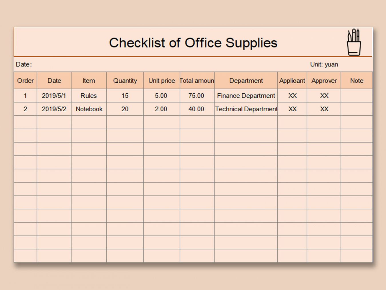 Office supply checklist template, Historically, checklists were straightforward to-do lists which served as reminders; attend the sales seminar, fax or mail the contract to an individual customer, or submit a worker memo. Even today, most dictionaries define a record as a record that serves as a reminder for a series of tasks to be finished. But, checklists have now evolved to important business management tools that do far more. Along with record action items, checklists are effective business processes that empower organizations to grow and progress systematically, and in a planned manner. They have become significant organizational tools for business enterprises.