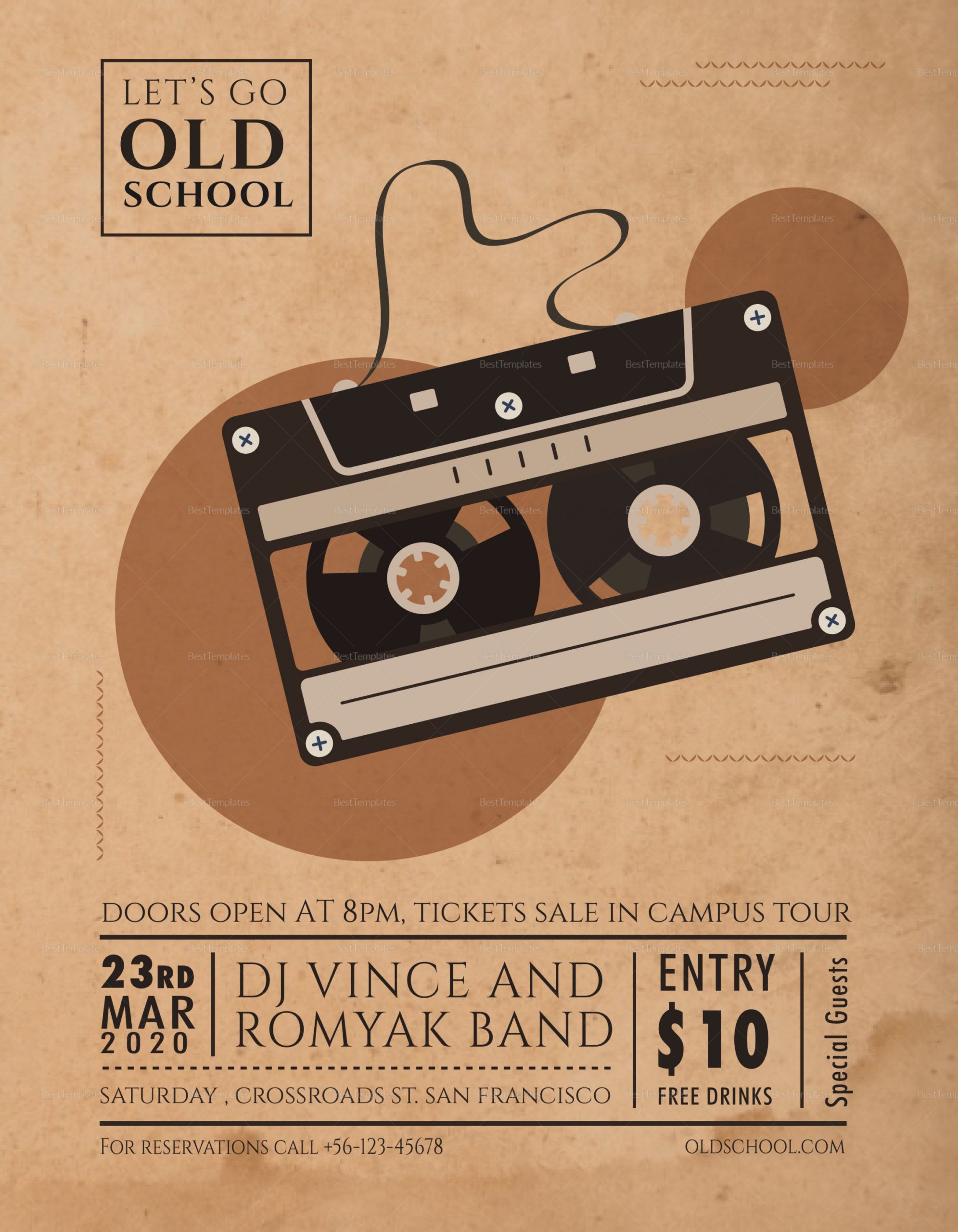 Old school flyer template, Flyers are an important marketing tool for many kinds of companies. Businesses, be it small or moderate or large, need to be marketed and advertised. For such needs, you will find flyers, which function as a communication between the company and the potential client. Flyer printing is therefore, quite crucial for company perspective. It involves displaying all the details about the business, with the message which is to be sent across. They are published with the aim of advertising or promoting the organization’s latest offers, discounts, etc.. Flyer printing, so involves placing the correct info in the perfect manner.