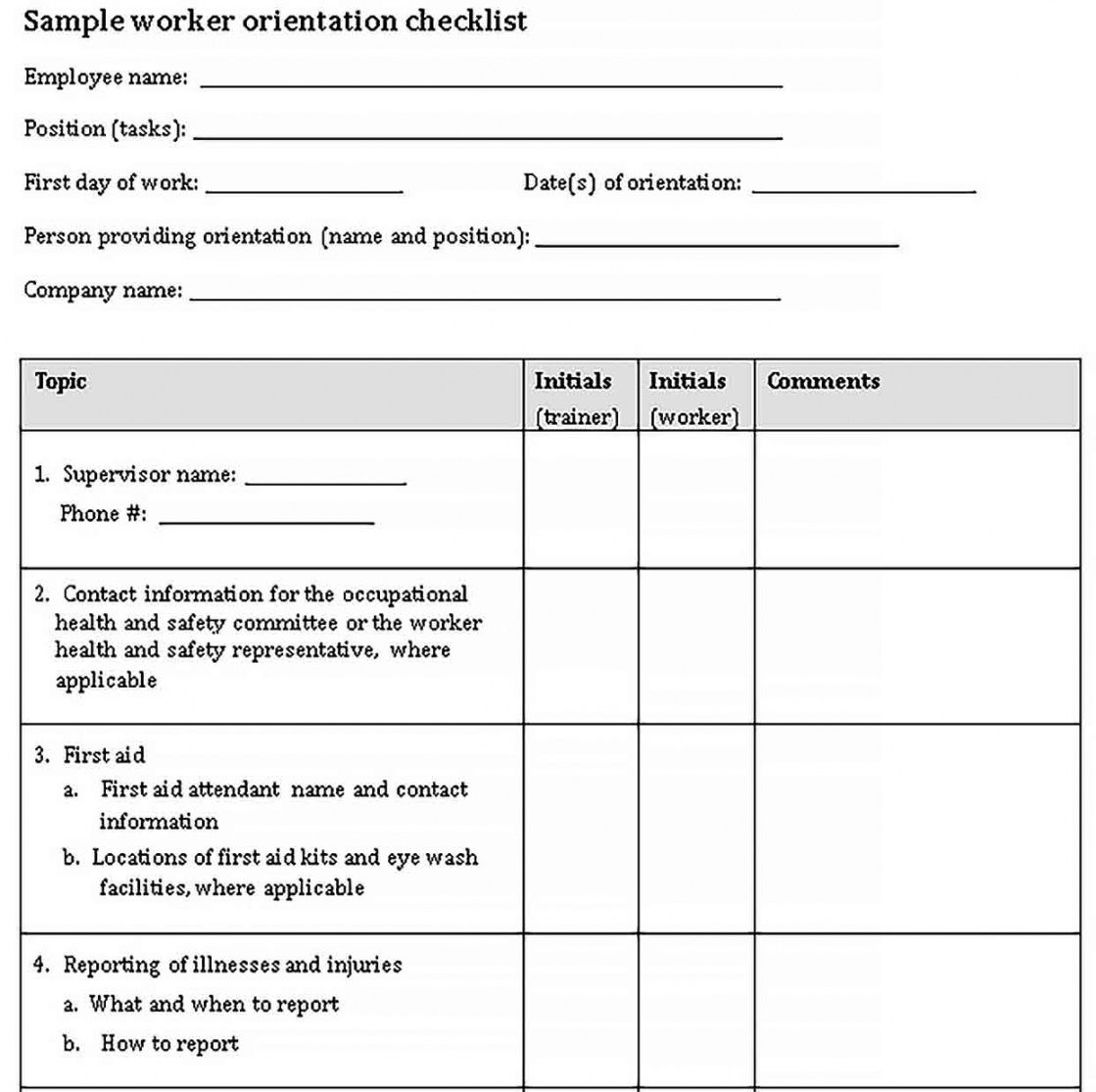 Orientation checklist template, For most of us life is a continuous struggle to stay organized, we compose lists of those things we need to and when we need to get them done. But when the tasks we must get done get a bit more complex a fantastic checklist might come in handy to ensure everything gets done properly. Using a template for a checklist you may create comprehensive lists which have groupings of specific tasks and checklists to make certain that you get each job done in the appropriate order and reduce the possibility of errors being made.