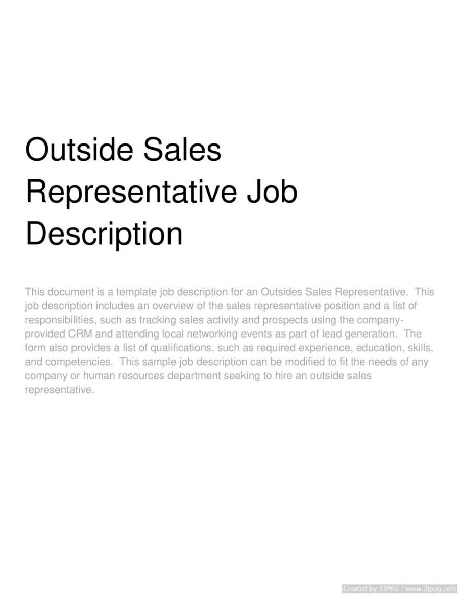 Outside sales job description template, Among the numerous responsibilities of a human resources expert, hiring fresh capable employees is among the most important. After carefully assessing the competency design your company wants, you’ll have the ability to ascertain the specific qualities that potential employees must have – the skills and qualities that are most crucial to a function or another. When you’ve carefully created your hiring criteria, the next essential step is the description.
