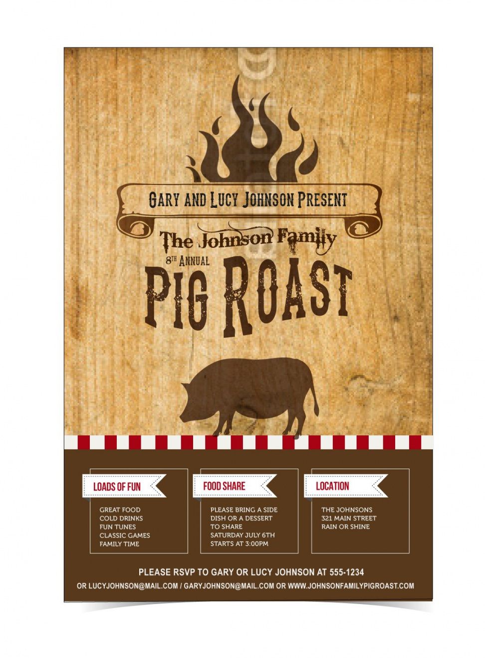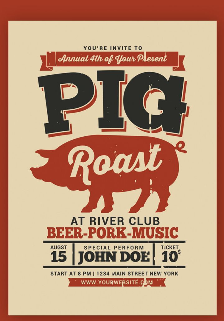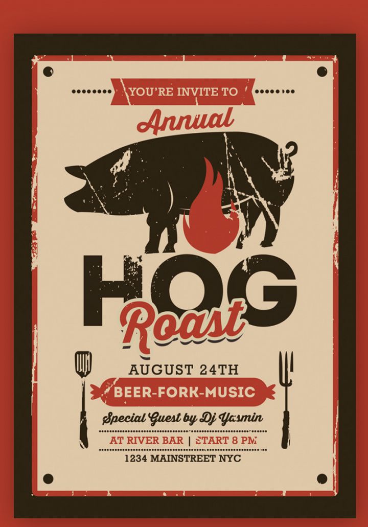 Pig roast flyer template, Flyers are informational papers about a specific company or a event that is being coordinated by some company. Flyer printing is a process of informing the general public about any fresh offers of sales or discounts as being offered by a company or organization. These educational article are good supply of informing masses of local marketplace about the new developments occurring in various places, like any new product, new event etc.. Flyers have evolved among an effective mode of immediate communication with the consumer.