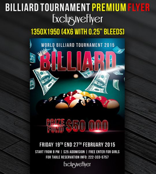 Pool tournament flyer template, Flyers are an important marketing tool for many sorts of companies. Firms, be it small or moderate or large, need to be promoted and advertised. For such needs, you can find flyers, which function as a communication between the business and the potential customer. Flyer printing is thus, very critical for company viewpoint. It involves displaying every detail about the company, using the message which is to be routed across. They are printed with the aim of advertising or promoting the provider’s latest offerings , discounts, etc.. Flyer printing, thus involves putting the correct information in the right way.