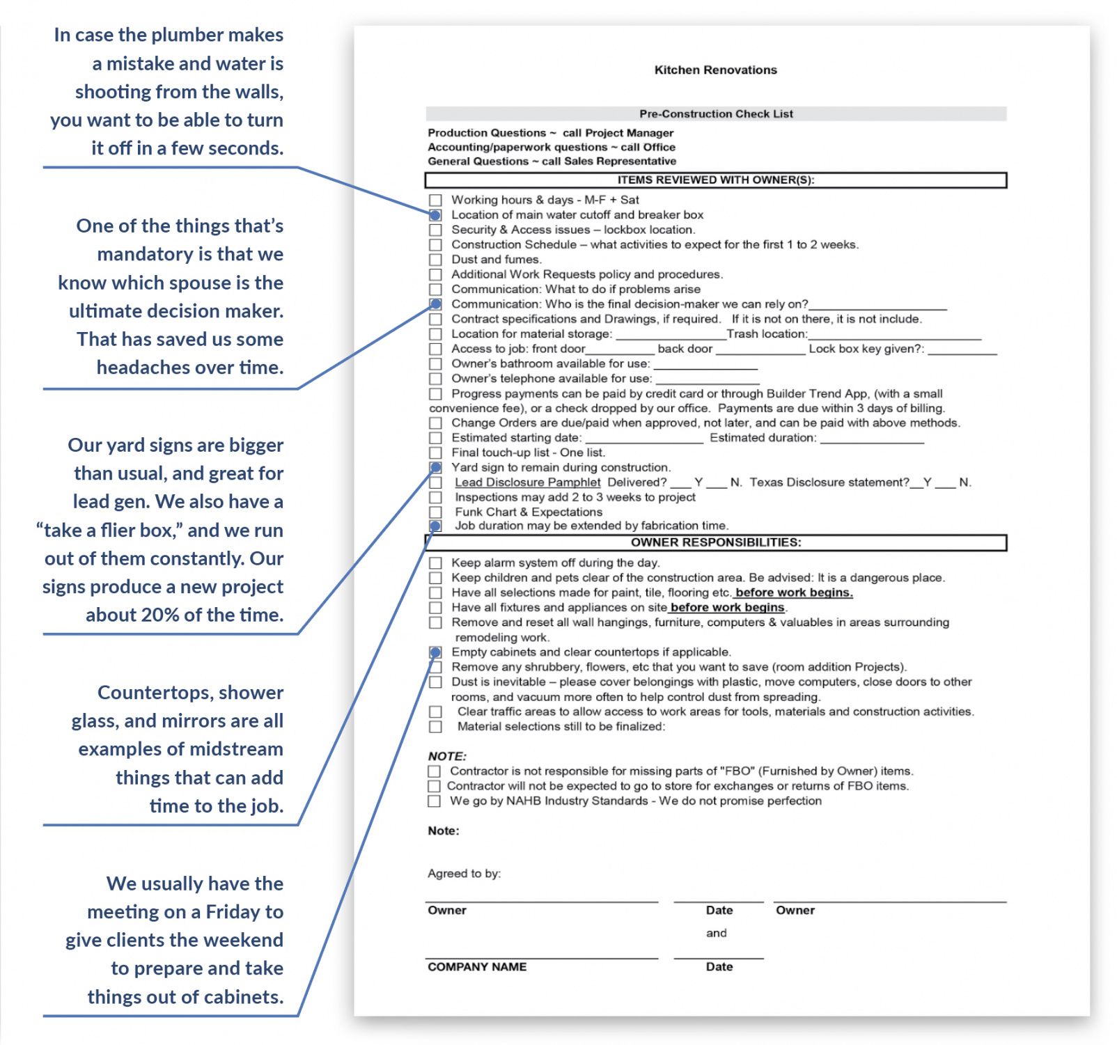A checklist is a list of items or tasks that you”check off” as you complete each item/task on the list. Checklists are everywhere and are an essential component of the majority of actions – both private and company. Within our daily lives, we create checklists for coordinating (“To-Do Lists”), preparation (birthday celebration ), prioritizing (bills to pay), shopping (grocery list), etc. Business is no different; checklists are crucial to a successful, efficient, and profitable operation.