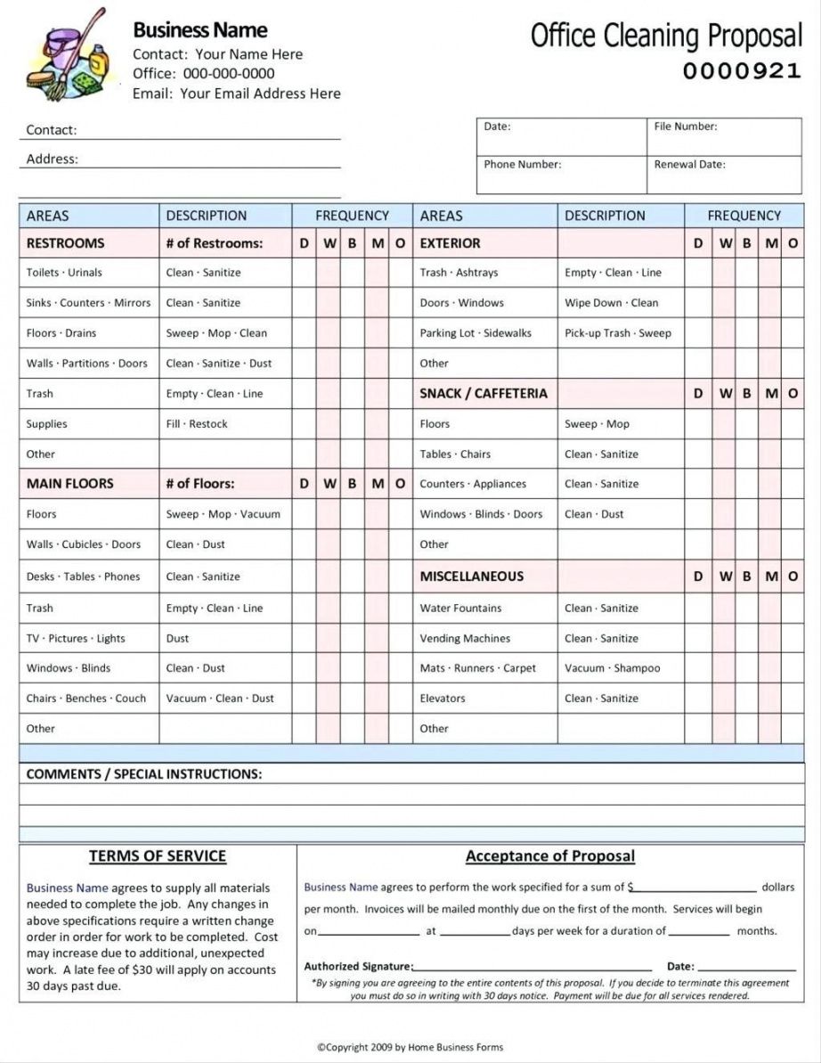 free cleaning bid proposal template  house cleaning checklist  house proposal checklist template doc