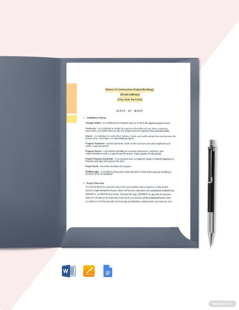 free sample residential construction scope of work template in google docs residential construction scope of work template