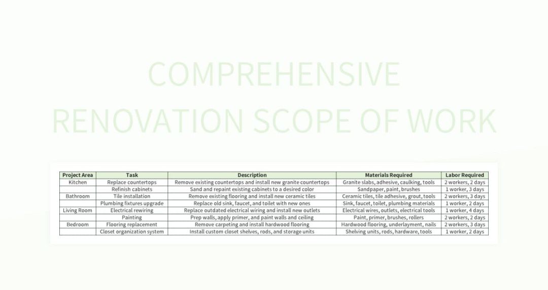 Residential renovation scope of work template, Ever started a project overflowing with energy, only to find yourself buried in surprise duties and constant reworks? You’re not alone. Many projects go off track because the initial expectations weren’t explicitly stated. That’s where a game-changing document called a SOW form comes in. It’s your project’s North Star, directing your crew (or partners) towards a positive result.