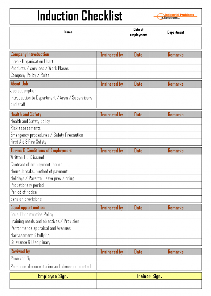 induction training to employee safety training checklist template excel
