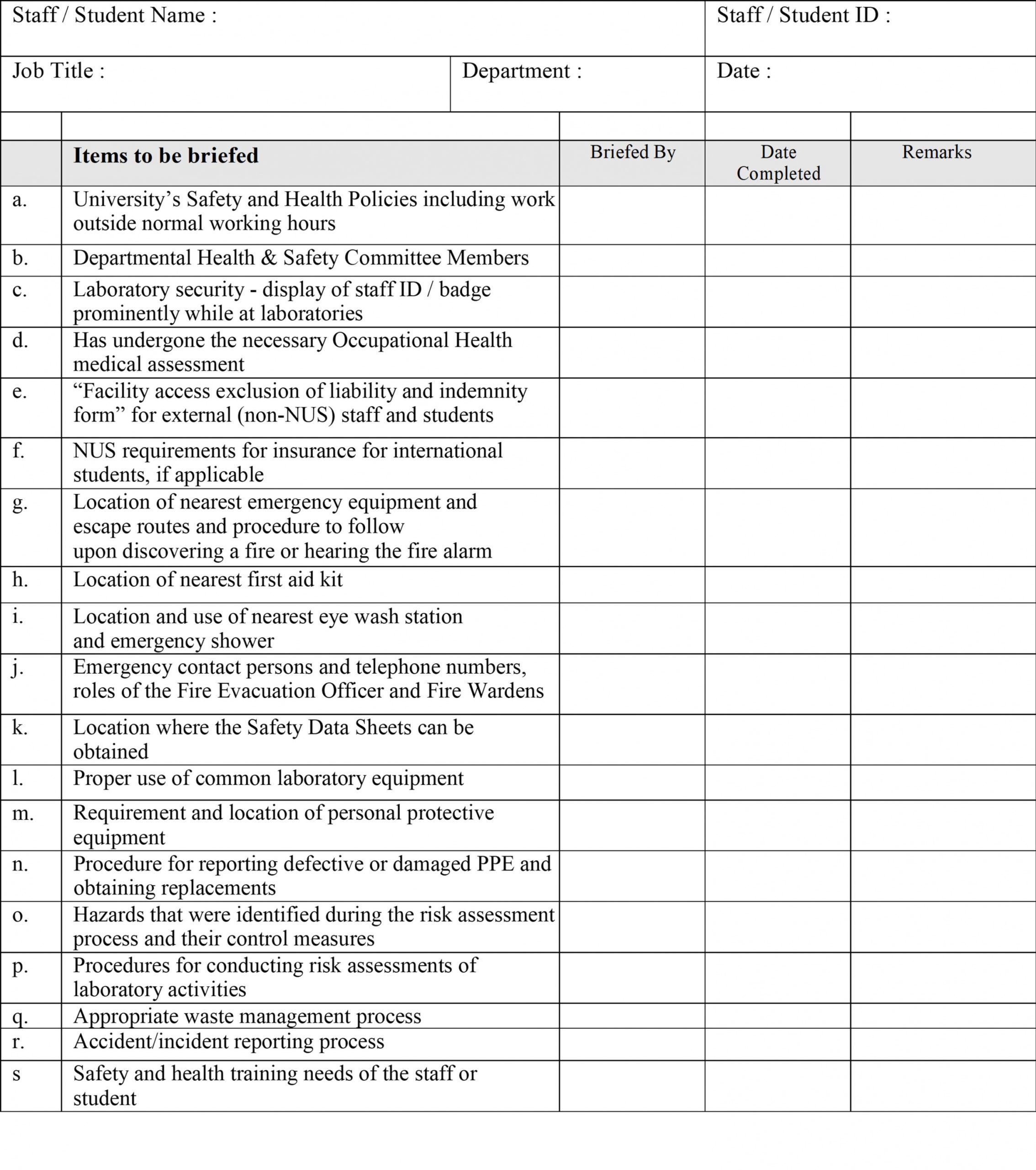 safety training nusmed employee orientation checklist pdf form safety training checklist template doc