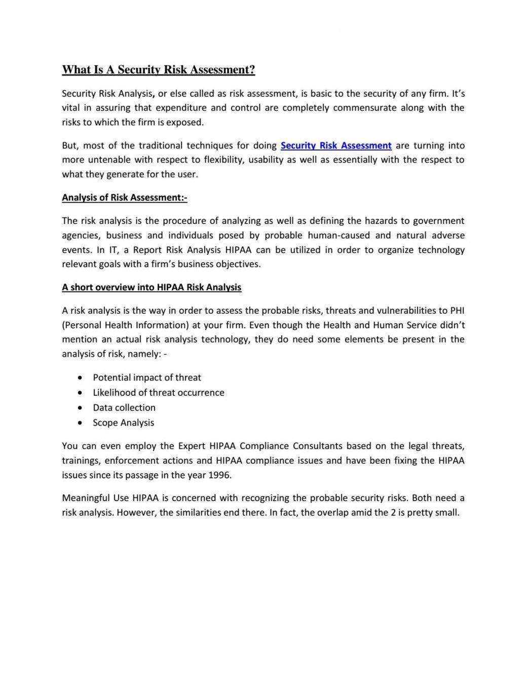Security risk analysis template meaningful use, For businesses to survive, especially during tough financial times, they must set themselves apart from their competitors. Innovation, therefore, becomes an integral component of their success. Innovation requires both a strategic vision on the part of companies, in addition to creating conditions which may be achieved through internal changes and improvements. This can be accomplished through a procedure named Business Analysis. Business Analysis can be described as a study into the operations of a venture aimed at understanding every facet of how the enterprise is functioning including its processes, people and performance, as well as its goals and objectives. Business Evaluation is the crucial initial step in the software consulting process since it identifies enterprise wants and helps build the solutions required to meet these needs.