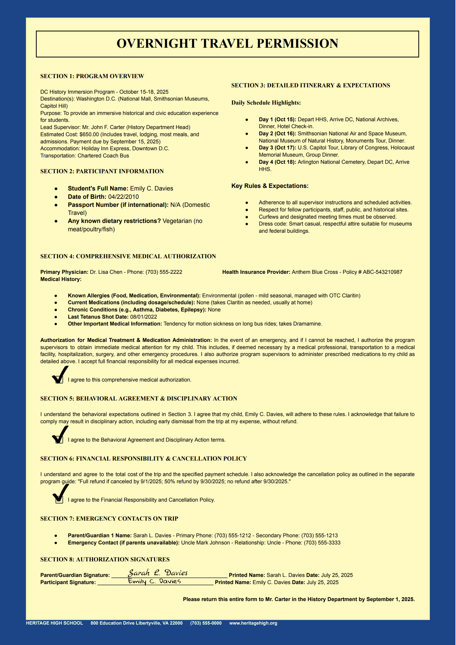 This unified template becomes a powerful tool for communication and coordination. For parents, it offers peace of mind, knowing that not only is their child’s schedule meticulously planned, but all necessary consent forms and medical details are with the responsible adults. For trip leaders, it means less administrative burden and more confidence in leading the group, as every piece of vital information is at their fingertips.