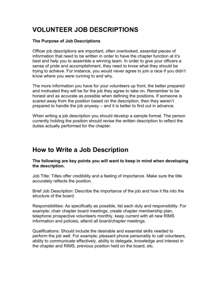 Volunteer job description template, The perfect job description can assist your recruitment process run smoothly. It may attract the sort of candidates that you want, and can also market your brand. The work description has three chief purposes. It can help to attract candidates with the skills which you need. It defines the details of the job function and the duties the candidate will take on. Plus it may be applied as a reference resource, which can be very useful when it is the right time to carry out appraisals.