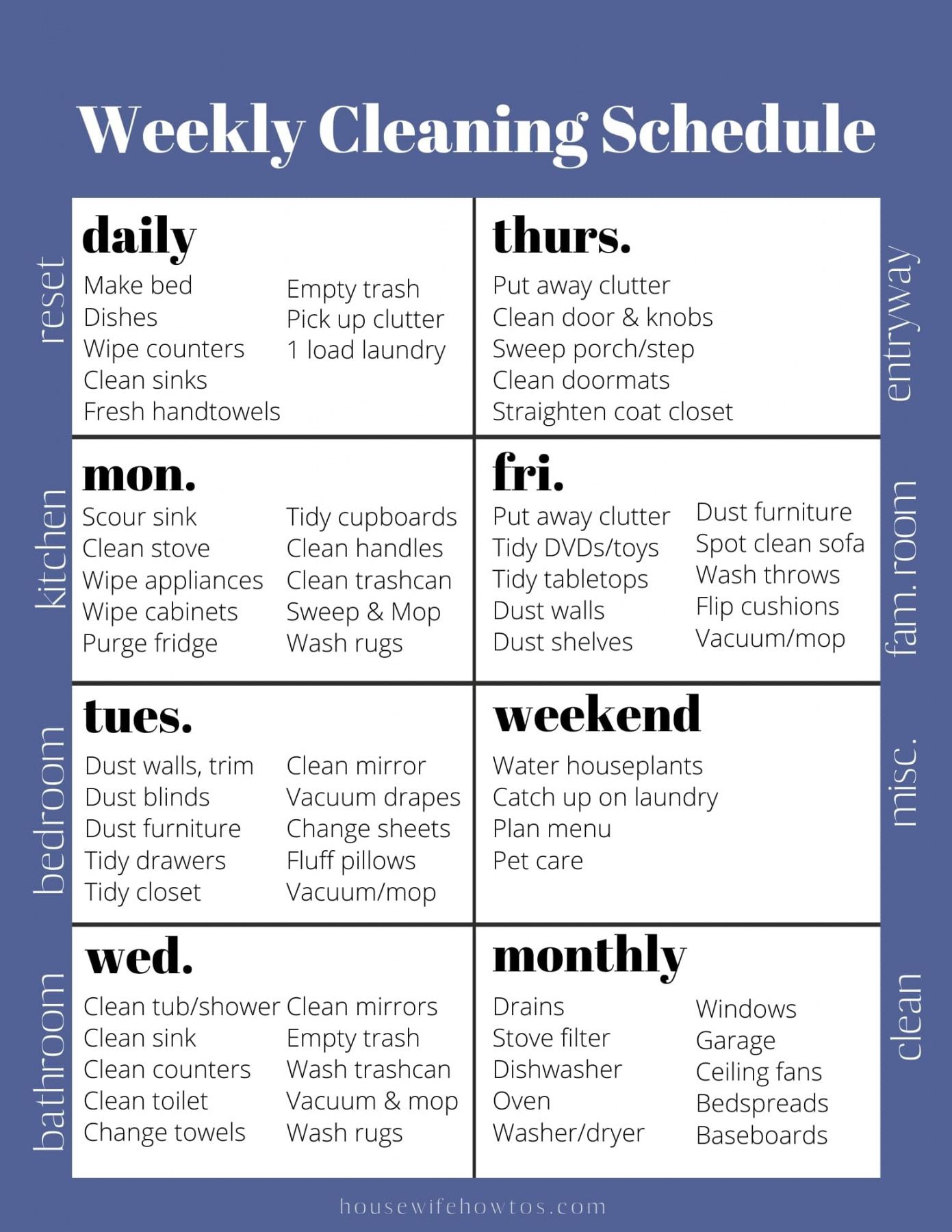 Weekly house cleaning checklist template, Historically, checklists were simple to-do lists which functioned as reminders; attend the revenue conference, fax or mail the contract to a client, or distribute a worker memo. Even today, most dictionaries define a checklist for a document that acts as a reminder to get a series of jobs to be finished. However, checklists have evolved to significant business management tools that do much more. In addition to record action items, checklists are effective business processes that empower organizations to raise and progress systematically, and in a planned manner. They’ve become important organizational tools for business ventures.