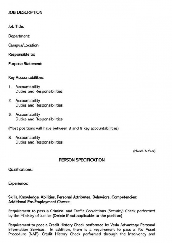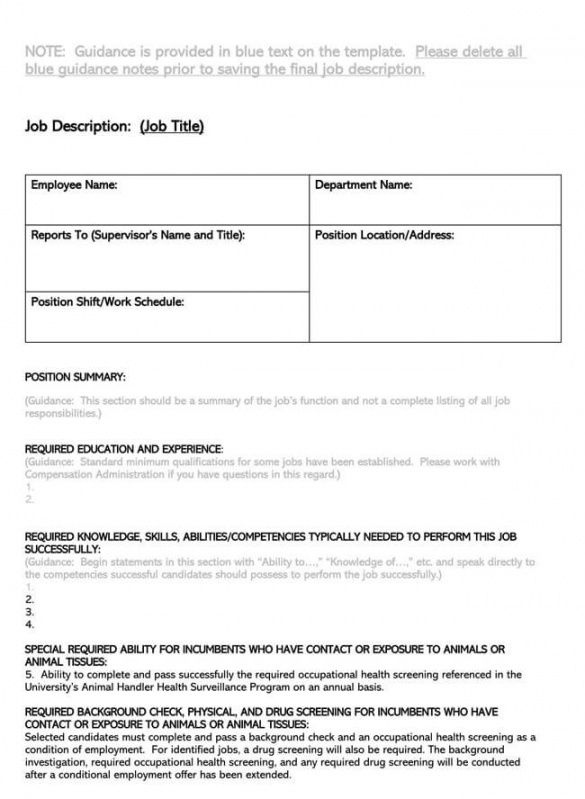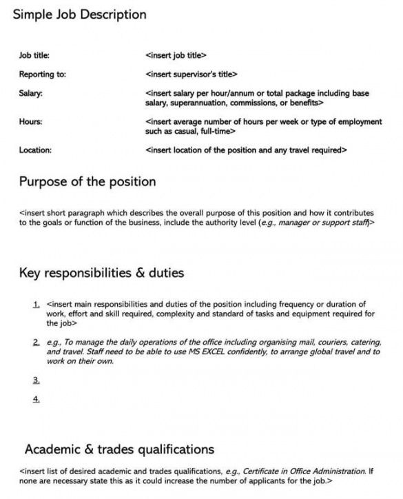 Writing a job description template, Job descriptions are critical to your business since they define job responsibilities and expectations. Job descriptions can be utilised in several of ways in your business. First, a description will help a candidate decide whether the job is of attention. Secondly, the description can allow you to join the candidate to decide whether the candidate is suitable for the position. The project description will be able to help you in educating new employees. Finally, the description creates the backbone of your test and inspection process.